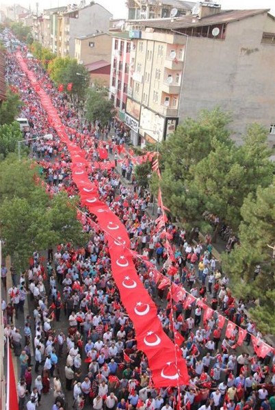 Yürüyüş sırasında 209 metre uzunluğunda Türk bayrağını taşıyan vatandaşlarımız sloganlar atarak teröre tepki gösterdi.